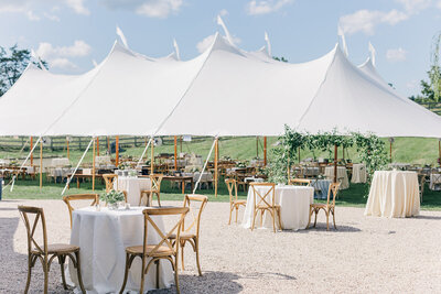 Big Spring's post and beam barn makes an excellent indoor ceremony location in the event of inclement weather. For parties of 150 or more, we highly suggest renting a tent to provide adequate covered space for guests. Check out one of our favorite indoor weddings over on our blog!